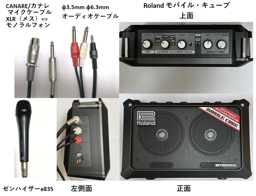 使用したスピーカー(アンプ)「Roland MOBILE CUBE」はAmazonで購入。なお、2026年2月に上位互換機種「ROLAND ローランド CUBE Street MINI キューブストリートミニ バッテリー駆動小型アンプ CUBE-ST-MI (MOBILE CUBE後継機種)」が発売されたのでちょっと早まった?。