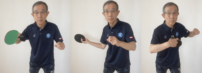 ペン粒が合理的であるもう一つの理由は、フォア、バック共に裏面の角度が出やすい(自然に下を向く)のでオーバーミスしにくいことです。ペンホルダーの特性として、フォアもバックも表面は上を向きやすいが、粒高面であるため摩擦や反発が小さくオーバーミスしにくい。この特性をフルに生かそうとすれば、フォアもバックも両面を使う必要があります。4面共攻守に使うのです。バック側の粒高攻撃手段として、プッシュだけでなくバックハンドスマッシュも使う。使い手は合理的だと考えるが、対戦相手は「ペン粒というより『へん粒』だ」と嘆く。このような卓球で試合を出来るようにしたいと思っています。